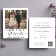 Budget-friendly elopement or private wedding announcement and all-in-one wedding reception invitation. The front features your photo, "Happily Ever After Party" in a mix of simple typography and a chic script with swashes and your first names and wedding or reception date joined together by a heart. On the back, input your wedding website address to create a QR code for guests to scan to see your wedding photos, all of the details and to RSVP online, and add your names in a signature-like script. This budget semi-gloss paper is similar in weight to photo paper. A larger 5x7 traditional card stock version is also available (message us for the link).