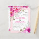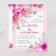 BUDGET pink watercolor flowers floral reen wedding invitation with QR code for RSVP. It showcases bouquets of flowers in hot pink tones on the corners while your text is placed in a white frame with a blush pink border. The back includes floral garlands on the upper and bottom parts and the QR code.