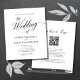 Budget All in One QR Code RSVP Black Calligraphy Wedding Invitation... Our unique affordable "All in One" black and white wedding invitation features modern black handwriting calligraphy combined with serif typography for a simple classic and elegant wedding invitation. The back of the invitation also displays your wedding website QR code as well as the website's URL itself allowing your invitees to easily RSVP online and view all of the details normally sent in a wedding packet. This modern style wedding invitation was designed to be both elegant and budget conscious... not to mention time-saving. All example text (aside from the graphic calligraphy elements) and the example QR code graphic can be easily revised with your own information using the personalization template.