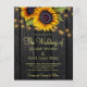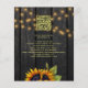 Rustic country wedding celebration and reception stylish all in one BUDGET invitation template with qr code to website on dark brown barn wood background featuring big yellow gold sunflowers bouquets, strings of twinkle lights and a faux gold typography script. +++++++++++++++ Easy to personalize with your details and automatically generated QR CODE for details and to rsvp online! ++++++++++++ The invitation is suitable for outdoor garden backyard rustic country barn weddings. +++++++++++++++++++++++++++ PLEASE READ THIS BEFORE PURCHASING! This is a budget affordable wedding card printed on a paper sheet (each sheet has one card). ++++ For the best rapport price-quality, our advice is to choose the Semi-Gloss paper type (it is thick enough to be used for stationery) ++++ If you need envelopes, choose the ENVELOPE OPTION. +++ Double-check all the information and spelling of your text because you will receive exactly what you see - no one else will check anything before printing. ++++ This card is designed for size 4.5" x 5.6". In the case you choose another size of the card and text goes outside page, everything needs to be fixed before adding the product to cart. Please ask Live Design Service for help.