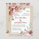BUDGET terracotta watercolor flowers floral beige fall wedding invitation with QR code for RSVP. It features bouquets of flowers in terracotta brown tones on the corners while your text is placed in a white frame with a beige border. The back includes floral garlands on the upper and bottom parts and includes your QR code for youe guests to scasn and RSVP. This elegant romantic design is perfect for a fall/autumn wedding with a neutral color palette.