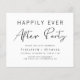 Budget-friendly minimal and chic black and white wedding after party invitation for a post elopement or wedding celebration. "Happily Ever After Party" is written in a mix of simple typography and an elegant modern script. On the back, input your wedding website address to create a QR code that your guests can scan to RSVP online and obtain additional details such as directions and accommodations.