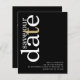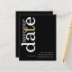 A value for money BUDGET alternative on a smaller size 4.5 x 5.6” semi-gloss 110lbs weight, which is of similar thickness to a postcard (however is not suitable to use as a postcard.). PLEASE NOTE there is ONE invite per sheet. Budget QR Code White Gold Text Black Save Date. Add your QR code to your wedding website on the back by replacing the QR code on the sample. You can create QR codes for free online. Simply search “QR code creator” and lots of options come up to create for free. A modern stylish typographical design to invite your family and friends to save your date, with Save Our Date in large typography rotated and to the left hand side at the top in white, with a gold letter "t" on a background of black. Easily personalise the rest of the text.