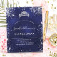 For an elegant Quinceañera, 15th birthday. A blue background color, the blue color is uneven. Decorated with faux silver glitter dust and a tiara, crown. Personalize and add a name, age and party details. The name is written with a hand lettered style script