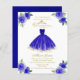 Elegant royal blue floral affordable quinceanera party 4.5”x5.6” invitations. PLEASE NOTE: The envelopes are NOT INCLUDE; matching A7 envelopes are available to be purchase separately.