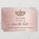A Save the Date card for a Quinceañera, 15th birthday masquerade party. A rose gold metallic looking background decorated with faux silver glitter dust and a masquerade mask. Personalize and add a date and name/age. The text: Save the Date is written with a large trendy hand lettered style script with swashes.