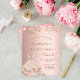 A modern, stylish and glamorous invitation for a Quinceañera, 15th birthday party. A faux rose gold metallic looking background with faux glitter and a rose gold ballgown. The name is written with a modern dark rose gold colored hand lettered style script. Personalize and add your party details.