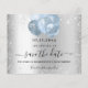 A girly and trendy Save the Date card for a Quinceañera, 15th birthday party. A faux silver looking background decorated with faux silver glitter dust and blue balloons. Personalize and add a date and name/age. The text: Save the Date is written with a large trendy hand lettered style script.