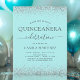 Budget Silver and Teal Blue Faux Glitter Sparkle Girly Quinceanera Celebration Party Invitations include beautiful and elegant script typography for the special 15th birthday celebration.