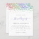 A value for money BUDGET alternative on a smaller size 4.5 x 5.6” semi-gloss 110lbs weight, which is of similar thickness to a postcard (however is not suitable to use as a postcard.). PLEASE NOTE there is ONE invite per sheet. Rainbow Glitter Script Wedding Invitation. A multi colored faux glitter border is at the top on each side. Easily personalise the text to your own details. You can also change the text and background colors via the customise further option if you wish.