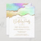 This trendy, feminine budget birthday party invitation is ideal for teen girls or women of any age. The design features a watercolor image of an agate geode in rainbow pastel shades of green, blue, purple, orange and yellow, trimmed with faux gold glitter highlights. The words "Birthday Party" appear in faux gold glitter in decorative modern handwriting font. Customize the invitation with the name of the guest of honor in gold art deco font and the party details in gold sans serif type on a white background. The same pastel agate image appears on the reverse side. Shop our collection for matching party supplies, including personalized decorations, favors, tableware, food and more. This agate design is also available in other card sizes/prices, specific birthday milestone years, other events (such as baby shower or bridal shower) and color choices.