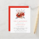 Red Cream Florals Wedding Evening Party Invite. A budget price SMALLER 4.5” x 5.6” alternative. Available in a SEMI GLOSS 110 lb CARD STOCK which is the default option (recommended for invitations), OR a SATIN FINISH 80 lb THINNER PAPER STOCK (ideal for enclosures). Envelopes are an optional extra and are slightly larger than the card size.. A bouquet of festive colored florals is at the top followed by the text which you can easily personalise. A coordinating red is on the back which you can change if you wish via the customise further option.