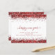 Budget Red Glitter Borders Happy New Year Card. A budget price 4.5” x 5.6” alternative, in a SEMI-GLOSS 110 lb CARD STOCK which is similar in thickness to a postcard. Envelopes are an optional extra and are slightly larger than the card size. Easily personalise the text to your details.