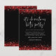 Red Glitter It’s Christmas Let’s Party Black Invite. A budget price SMALLER 4.5” x 5.6” alternative. Available in a SEMI-GLOSS 110 lb CARD STOCK which is the default option (thicker for invitations), OR a SATIN FINISH 80 lb THINNER PAPER STOCK (ideal for enclosures). Envelopes are an optional extra and are slightly larger than the card size. Glitzy style for your Holiday gathering with red faux glitter bordering the top and bottom edges on both sides and a set handwriting style script for the main heading typography on a black background. Easily personalise the rest of the text to your own details.