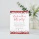 Red Glitter It’s Christmas Let’s Party Invite. A budget price SMALLER 4.5” x 5.6” alternative. Available in a SEMI-GLOSS 110 lb CARD STOCK which is the default option (thicker for invitations), OR a SATIN FINISH 80 lb THINNER PAPER STOCK (ideal for enclosures). Envelopes are an optional extra and are slightly larger than the card size. Glitzy style for your Festive gathering with red faux glitter bordering the top and bottom edges on both sides and in a set handwriting style script for the main heading typography. Easily personalise the rest of the text to your own details.