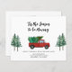 Budget Vintage Red Truck Christmas Tree New Home Moving Announcement... The front of our affordable holiday season new address card features a vintage red watercolor truck transporting a huge green Christmas tree driving past stands of pine trees below the handwritten script greeting: "Tis the Season to be Moving." Additional text on front of the card reads: "Merry Christmas from our new home" along with your name and new address just beneath. On the back is all the information your family and friends will need to stay in touch. All text on front and back of the card can be revised very easily on the Personalization template.