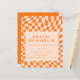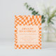 This modern wedding invitation features a bold abstract check design in warm retro orange, paired with a soft neutral center for the event details. Printed on a budget paper option, it offers the same contemporary look with a more affordable finish. The front presents the main invitation information, while the back includes a QR code for easy access to RSVPs and additional wedding details. A stylish, practical choice for couples who want modern design and a streamlined guest experience.