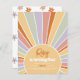 Retro-inspired birthday party invitations with a hippie-style sun, colorful daisies, and groovy fonts. The front of this budget card features a hand-drawn sun with rays of sunshine in different pastel rainbow colors. Inside the center of the sun, the birthday girl's name is written in a chic handwriting script. Her age appears underneath in bold groovy typography. The cards reverse to a cute pattern of colorful daisy flowers. Perfect for any age girl. For boho events, retro 60s or 70s themes, hippie styles, spring birthdays, pool parties, summer fun, sun-themed celebrations, and more! This invitation template is editable online, simply click on "Personalize this template" to get started. For more advanced edits, select "click to customize further" to access Zazzle's Design Tool. As part of the budget selection on Zazzle, this sheet isn't a standard invite size or paper quality. If you want this design on an invitation card you can find it in our store or use the Zazzle Make Machine to transfer it onto the product of your choice. Please note the cards are printed as you see them on your screen when ordering, so be sure to double-check for typos! A photo version of this design is available in the collection linked on this page. Browse my store for more sunshine birthday party invitations.