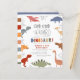 Stomp, Chomp and Roar! Let's party like a dinosaur! A budget and perfect invitation for a fun-filled party! Your event details are framed by different dinosaurs in blue, yellow, orange, red, pink, green, gray, and brown. Between the animals are hand-drawn tropical leaves and jungle foliage in a hand-drawn doodle-style. The back of the invite has stripes with the same colors as the dinosaurs. Click on "Personalize" to customize the wording and your event details. As part of the budget selection on Zazzle, this sheet isn't a standard invite size or paper quality. If you want this design on an invitation card you can find it in our store or use the Zazzle Make Machine to transfer it onto the product of your choice. Feel free to contact me if you have any questions, I'll be happy to help! CHeck out my store for more invitations!