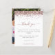 Rose Glitter Photo Hen Party Thank You. A budget price SMALLER 4.5” x 5.6” alternative. Available in a SEMI-GLOSS 110 lb CARD STOCK which is the default option (thicker for invitations), OR a SATIN FINISH 80 lb THINNER PAPER STOCK (ideal for enclosures). Envelopes are an optional extra and are slightly larger than the card size. A border of rose gold glitter is at the top, and Thank You is in a handwriting style script in dusty rose. Easily personalise the text to your own details. On the back swap in your favorite photo from your shower of portrait orientation.