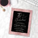 Budget-friendly elegant black and sparkly rose gold seventieth birthday party invitation with "70 & Fabulous" in a stylish rose gold script and simple rose gold typography.