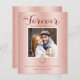 Engagement announcement cards are perfect for when you don’t have a wedding date set, but you can’t wait to share the good news with your friends and family! This elegant design on a cheaper paper option, features rose gold background, and trendy script calligraphy “Forever” text. There is a message on the back, which you can delete if you don’t need it, or change the wording to make it a save the date card or engagement party invitation.