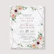 Create your own modern and sophisticated style wedding invitations with rose-gold geometric pattern and pink watercolor floral illustration on a marble textured background.