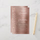 The left-hand edge of this elegant modern wedding invitation features a rose gold faux glitter border. The customizable text combines white handwriting, copperplate and italic fonts on a rose gold faux brushed metal background. The reverse side provides space for wedding details on a rose gold brushed metal background, along with a QR code guests can scan to visit your website and RSVP, which saves the cost of printing and mailing separate RSVP cards.
