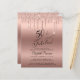 Elegant, chic and budget-friendly 50th birthday party invitation featuring "50 & Fabulous" written in stylish script against a rose gold background, with rose gold faux glitter dripping from the top. You can personalize with her name and the party details. This budget semi-gloss paper is similar in weight to photo paper. A larger 5x7 traditional card stock version is also available (message us for the link).