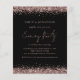 A value for money BUDGET alternative on a smaller size 4.5 x 5.6” semi-gloss 110lbs weight, which is of similar thickness to a postcard (however is not suitable to use as a postcard.). PLEASE NOTE there is ONE invite per sheet. A set handwritten style for Evening Party and the rest of the text you can easily personalise. On a background of black, with coordinating rose gold typography.