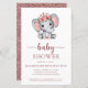 BUDGET Rose Gold Glitter Cute Princess Elephant Baby Girl Baby Shower Invitation featuring an adorable princess elephant and faux glitter background. **Our BUDGET paper is smaller and more delicate, but still beautiful!** For a comparison of paper types, please watch our video here: https://youtu.be/G0F9Am5HPD4 If you need assistance or matching items, please contact us at cedarandstring@gmail.com.