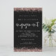 Rose Gold Glitter Borders Engagement Black Invitation. A LARGER size 5.5” x 8.5” at a budget price, on a SEMI GLOSS 110 lb CARD STOCK, great for invitations, at roughly the same thickness as a postcard, or an elegant 110 lb LINEN stock – for a luxury, slightly thinner feel at great value. PLEASE NOTE THE OPTIONAL ENVELOPES ARE A LITTLE BIGGER IN SIZE AT 6.75” x 9” approx. This budget size alternative is also available in other paper choices. The FELT 100 lbs paper is buff colored, NOT white, so adds a rustic touch. The MATTE 80lbs paper stock is bright white, for crisp printing, great for your menus and programs, whilst the SATIN 80lbs paper is thin and light, ideal for enclosures. Elegant rose gold faux glitter borders are at the top and bottom and also on the back on a background of black. Engagement is set in an elegant handwriting style. Easily personalise the rest of the text to your own.
