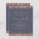 PLEASE NOTE There are two paper options to choose from for this size (4.5 x 5.6”) in the Budget range. For this product, I would highly recommend the semi-gloss which is a 110 gsm card stock, similar in thickness to a postcard. The Satin option is a much thinner paper 80gsm. The default is set to semi-gloss. There is ONE invitation per sheet. BUDGET Rose Gold Glitter Gray Wedding Evening Party Invitation. A set handwritten style for Evening Party and the rest of the text you can easily personalise. On a background of gray, with coordinating rose gold typography.
