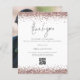 A value for money BUDGET alternative on a smaller size 4.5 x 5.6” semi-gloss 110lbs weight, which is of similar thickness to a postcard (however is not suitable to use as a postcard.). PLEASE NOTE there is ONE per sheet. Budget Rose Gold Glitter QR Code Wedding Thank You. Add your QR code to your wedding photo gallery on the back by replacing the QR code on the sample. You can create QR codes for free online. Simply search “QR code creator” and lots of options come up to create for free. A touch of glam with faux glitter borders in rose gold and a set stylish handwriting style script for Thank You. On the back replace the sample picture with your own favorite from your day as a keepsake for your guests. Easily personalise the rest of the text with your message and names.