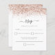 A value for money BUDGET alternative on a smaller size 4.5 x 5.6” semi-gloss 110lbs weight, which is of similar thickness to a postcard (however is not suitable to use as a postcard.). PLEASE NOTE there is ONE invite per sheet. Budget Rose Gold Glitter script Wedding RSVP.. A faux glitter border at the top on both sides with an elegant script with swashes for the header.