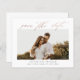 An elegant budget rose gold script photo save the date with horizontal photo and minimal text. Click edit to customize this design.