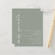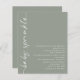 Budget Rotated Script Sage Baby Shower Sprinkle. A budget price smaller 4.5 x 5.6” alternative on a 110gsm similar in thickness to a postcard. There is ONE per sheet. Contemporary style with Baby Sprinkle rotated and to the left hand side and easily personalise the rest of the text to your own details. You can change text and background colors if you so wish via the edit further option.