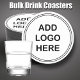 Replace the graphic logo template with your own logo or graphic on these budget drink and beverage coasters for business promotion, restaurants, or social events. Promoted your company, cause, or services by making your own drink coasters.