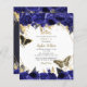 Budget Elegant Royal Blue Gold Floral Butterflies Sweet 16 Invitation