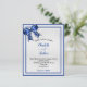 A modern, elegant and wedding invitation. Faux silver metallic looking background decorated with royal blue frames and bow. Personalize and add your names and wedding details. Black colored letters.