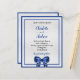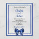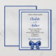 A modern, elegant and wedding invitation. Faux silver metallic looking background decorated with royal blue frames and bow. Personalize and add your names and wedding details. Black and royal blue colored letters.