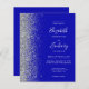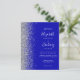 The left-hand edge of this elegant modern wedding invitation features a silver faux glitter border. The customizable text combines white handwriting, copperplate and italic fonts on a royal blue background. Add additional details on the back, along with a QR code to help your guests visit your wedding website.