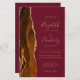 The left-hand edge of this elegant modern wedding invitation features a burnt orange and rust watercolor agate border trimmed with faux gold glitter. The customizable text combines gold-colored handwriting, copperplate and italic fonts on a burgundy background. Add additional details on the back, along with a QR code to help your guests visit your wedding website.