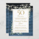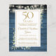 Featuring delicate watercolor country garden greenery and pretty string lights on a blue wood panels background, this chic rustic invitation can be personalized with your special 50 years anniversary celebration information. Designed by Thisisnotme©