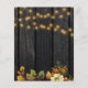 Chic rusty orange autumn fall flowers with dried leaves and foliage, a little stork carrying a baby boy in a light blue blanket, and a watercolor pumpkin over a dark brown barn wood background with strings of golden twinkle lights making a charming elegant budget affordable baby boy shower party invitation with a trendy handwriting gold "It's a boy!" typography script. ++++++++++++ Easy to personalize with your details! ++++++++++++++ Suitable for traditional autumn fall rustic country farmhouse outdoor backyard boy baby shower. ++++++++++ PLEASE READ THIS BEFORE PURCHASING! This is a budget affordable wedding card printed on a paper sheet (each sheet has one card). ++++ For the best rapport price-quality, our advice is to choose the Semi-Gloss paper type (it is thick enough to be used for stationery) ++++ If you need envelopes, choose the ENVELOPE OPTION. +++ Double-check all the information and spelling of your text because you will receive exactly what you see - no one else will check anything before printing. ++++ This card is designed for size 4.5" x 5.6". In the case you choose another size of the card and text goes outside page, everything needs to be fixed before adding the product to cart. Please ask Live Design Service for help.