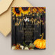Chic rusty orange and yellow gold autumn fall sunflowers with dried leaves and foliage, a little stork carrying a baby boy in a light blue blanket, and a watercolor pumpkin over a dark brown barn wood background with strings of golden twinkle lights making a charming elegant baby boy BUDGET affordable shower party invitation with a trendy handwriting gold "It's a boy!" typography script. +++++++++ Easy to personalize with your details! ++++++++++++++ Suitable for traditional autumn fall rustic | country | farmhouse | outdoor backyard boy baby shower. +++++++++++++++++++++++ PLEASE READ THIS BEFORE PURCHASING! This is a budget affordable card printed on a paper sheet (each sheet has one card). ++++ For the best rapport price-quality, our advice is to choose the Semi-Gloss paper type (it is thick enough to be used for stationery) ++++ If you need envelopes, choose the ENVELOPE OPTION. +++ Double-check all the information and spelling of your text because you will receive exactly what you see - no one else will check anything before printing. ++++ This card is designed for size 4.5" x 5.6". In the case you choose another size of the card and text goes outside page, everything needs to be fixed before adding the product to cart. Please ask Live Design Service for help.