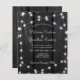 Rustic country budget affordable wedding invitation with strings of twinkle lights on a dark barn wood background and a chic calligraphy script, ++++++++++++++++++ Suitable for summer, autumn fall, or winter garden, backyard, outdoor, barn, farmhouse weddings.
