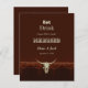 Budget country western cowboy eat drink married fun brown wood wedding announcement. Rustic bull skull. Use a little humor with these cute, funny farmhouse style invitations. Eat, Drink, cause we're gettin' Married can be personalized. Trendy, old wild west vintage antique style design. Cool farm animal. Customize script and typography. Image copyright Marg Seregelyi Photography.