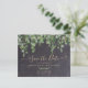 Save The Date! Announce your wedding to friends and family with these budget rustic chalkboard and eucalyptus save the date cards. These budget wedding invitation cards have an envelope option . Personalize with names, wedding date, location. These unique greenery wedding save the cards will make a lasting impression, your guests will make sure to save the date! COPYRIGHT © 2020 Judy Burrows, Black Dog Art - All Rights Reserved. Budget Rustic Eucalyptus Greenery Save The Date