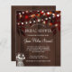 Rustic strings of twinkle lights, rust foliage autumn leaves, and a mason jar with baby breath on a brown barn wood background making a traditional style BUDGET affordable bridal shower invitation. +++++++++++++++ Ideal for your fall chic rustic country outdoor backyard bridal shower parties. +++++++++++++++++++++++ PLEASE READ THIS BEFORE PURCHASING! This is a budget affordable wedding card printed on a paper sheet (each sheet has one card). ++++ For the best rapport price-quality, our advice is to choose the Semi-Gloss paper type (it is thick enough to be used for stationery) ++++ If you need envelopes, choose the ENVELOPE OPTION. +++ Double-check all the information and spelling of your text because you will receive exactly what you see - no one else will check anything before printing. ++++ This card is designed for size 4.5" x 5.6". In the case you choose another size of the card and text goes outside page, everything needs to be fixed before adding the product to cart. Please ask Live Design Service for help.